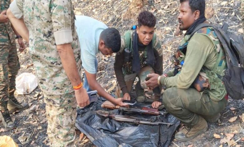जंगल में मिला नक्सली हथियारों का जखीरा, AK-47, इंसास रायफल समेत अन्य सामान बरामद