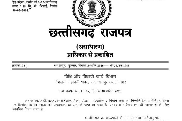 छत्तीसगढ़ धर्म स्वातंत्र्य विधेयक बना कानून, राजपत्र में हुआ प्रकाशित, जानिए क्या है सजा का प्रावधान…