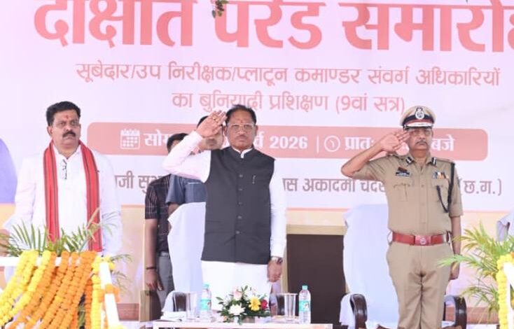 रायपुर। मुख्यमंत्री विष्णु देव साय आज चंदखुरी स्थित नेताजी सुभाष चंद्र बोस राज्य पुलिस अकादमी में आयोजित उप निरीक्षक संवर्ग के दीक्षांत (पासिंग आउट परेड) समारोह में शामिल हुए। उन्होंने परेड का निरीक्षण किया और सलामी ली। इस अवसर पर सूबेदार, उप निरीक्षक एवं प्लाटून कमांडर संवर्ग के अधिकारियों को सफल प्रशिक्षण पूर्ण करने पर बधाई एवं शुभकामनाएं दीं। इस सत्र में कुल 859 प्रशिक्षुओं ने प्रशिक्षण पूर्ण किया, जिनमें 54 सूबेदार, 528 उप निरीक्षक (जीडी), 02 उप निरीक्षक (कंप्यूटर), 01 उप निरीक्षक (रेडियो), 01 उप निरीक्षक (अंगुली चिन्ह), 68 उप निरीक्षक (एसबी) तथा 205 प्लाटून कमांडर शामिल हैं।