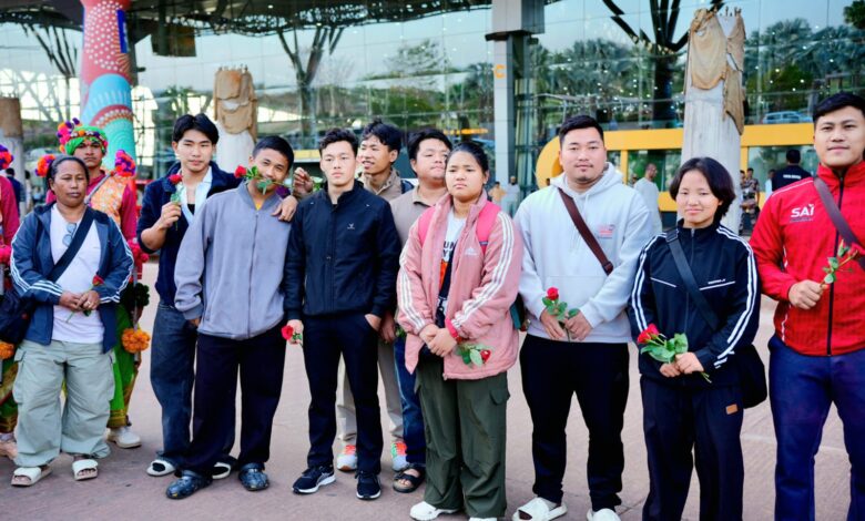 खेलो इंडिया ट्राइबल गेम्स के लिए खिलाड़ियों का छत्तीसगढ़ पहुंचना शुरू, अरुणाचल के वेटलिफ्टरों का विमानतल पर रंगारंग स्वागत