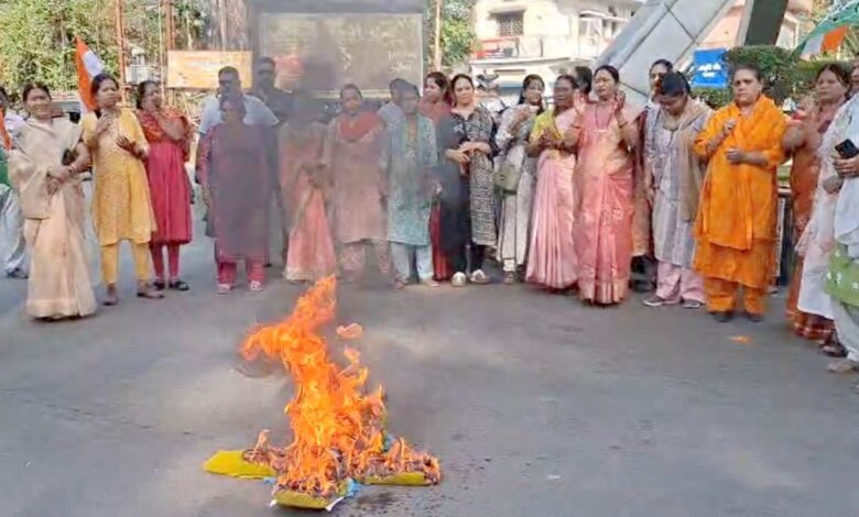 आंगनबाड़ी साड़ी खरीदी में 9.7 करोड़ घोटाले का आरोप, अंबिकापुर में मंत्री का पुतला दहन