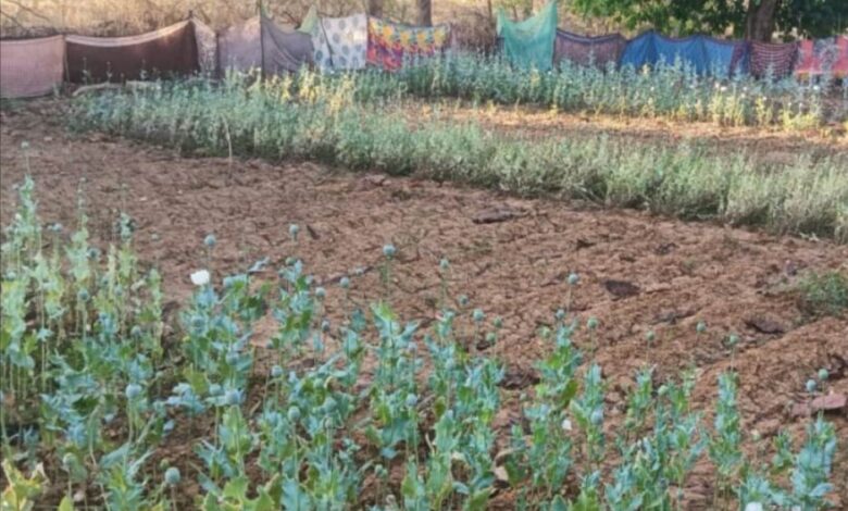 20 मार्च: रायगढ़ के तमनार ब्लॉक के आमाघाट में डेढ़ एकड़ में अफीम की खेती।