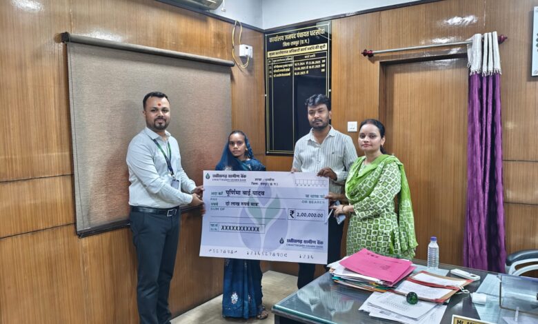 रायपुर। प्रधानमंत्री जीवन ज्योति बीमा योजना के अंतर्गत छत्तीसगढ़ ग्रामीण बैंक द्वारा जनपद पंचायत धरसीवां में हितग्राही स्व. ईश्वर यादव की नॉमिनी को 2 लाख रुपये की सहायता राशि प्रदान की गई।