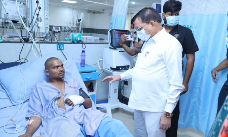 वेदांता पावर प्लांट हादसा : उद्योग मंत्री लखन लाल देवांगन ने घायल मजदूरों से मिलकर जाना हालचाल